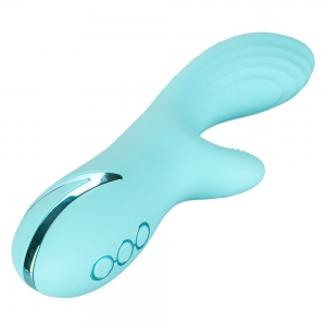 Dive deep into a sea of pleasure and sun-kissed fantasies with the playful California Dreaming® Catalina Climaxer. The luxurious rabbit massager has 10 intense vibration functions and 3 shaft rotation speeds for a one-of-a-kind pleasure experience. The seamless silicone body and textured teaser gives out knee-trembling stimulation both in and out of the water.
