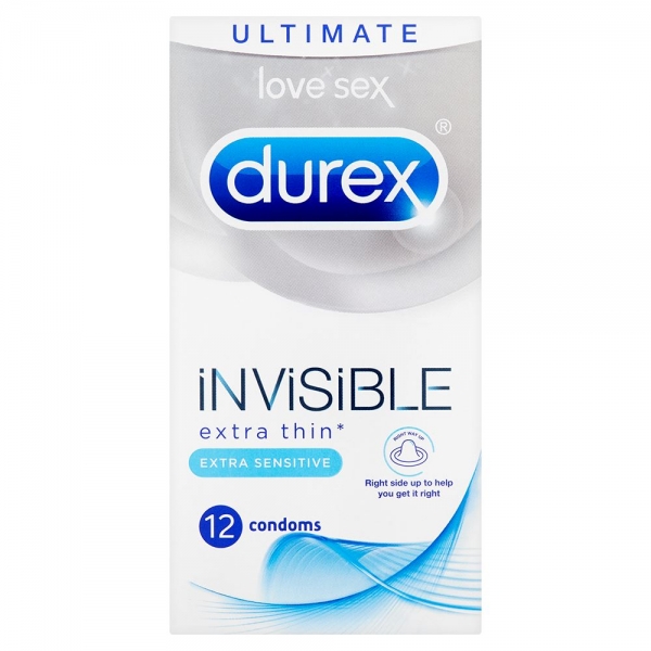 Durex invisible extra sensitive condoms are the thinnest ever developed by Durex. Extra Thin and extra sensitive. Transparent & lubricated natural rubber latex condoms.
