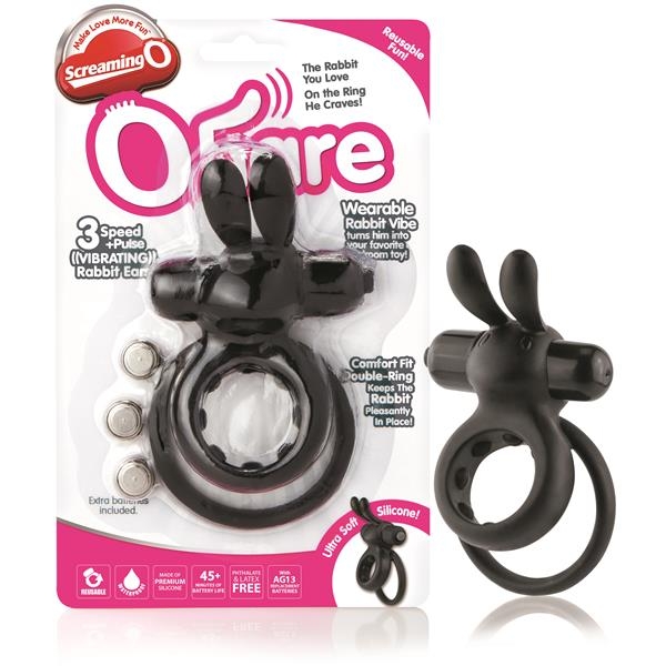 The Ohare Double vibrating ring turns him into your favorite rabbit vibe with a comfort fit erection ring and super-powered 4-function motor enhanced with soft flexible rabbit ears! Excite and delight with targeted clitoral stimulation from an iconic shape she loves and keep him harder longer with a comfort-fit ring that secures the vibrating rabbit in place!