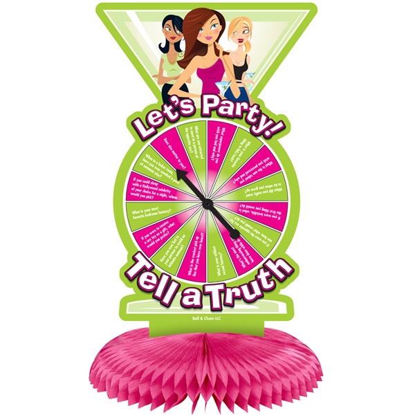 Let’s Party! Tell a Truth. Forget about all of those boring centerpieces that do not offer any entertainment. Our decorative centerpieces cleverly contains the ever-popular Truth or Dare party game. Complete with 32 unique activities our double-sided centerpieces will not only set the theme but will also provide hysterics and outrageous entertainment making your next bridal shower bachelorette party or hen party a night to remember!